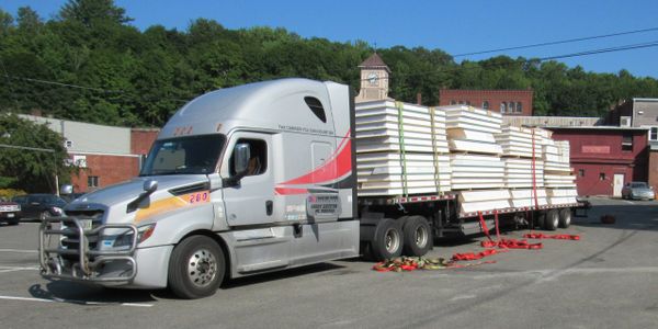 PREFABRICATED SIP PACKAGE ARRIVING ON SITE.